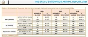Kenya has witnessed a rise in the participation of regulated Savings and Credit Cooperative Organizations (SACCOs) in credit information sharing with licensed Credit Reference Bureaus (CRBs), according to the SACCO Supervision Annual Report 2024.